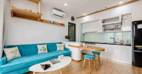 Không gian căn hộ được thiết kế chú trọng sự tinh gọn và thoáng đãng, đồng thời nhấn mạnh tính thẩm mỹ thông qua việc phối màu tinh tế. Các gam màu xanh pastel và xanh ngọc được kết hợp cùng trắng – be, tạo cảm giác tươi mới nhưng vẫn trang nhã, phù ...