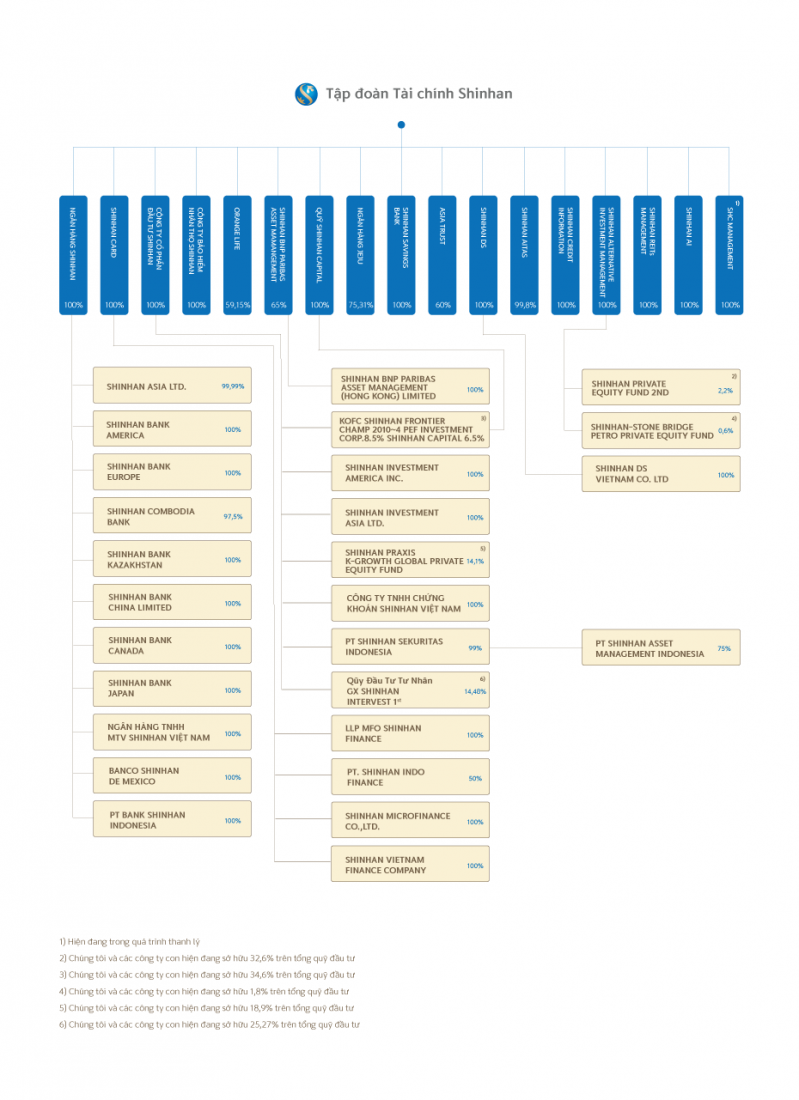 Tập đoàn Tài chính Shinhan được thành lập trên nền tảng của Ngân hàng Shinhan, Quỹ Đầu tư Shinhan và Công ty Quản lý Đầu tư Shinhan.