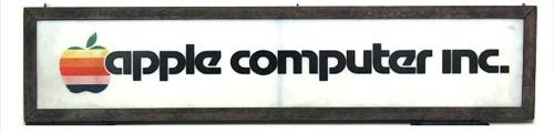 Đây chính là biển hiệu đầu tiên của Apple, được công ty treo trong các triển lãm thương mại khi họ trưng bày máy tính, đầu tiên là máy Apple I vào năm 1976.