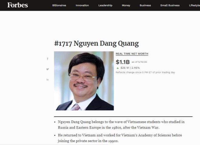 Năm ngoái, ông Nguyễn Đăng Quang được ước tính sở hữu khối tài sản 1,3 tỷ USD.