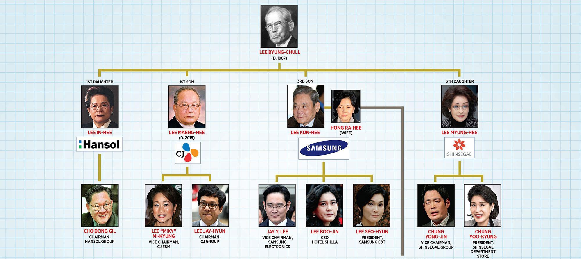 Lee Kun-Hee, chủ tịch của Samsung Group - tập đoàn lớn nhất Hàn Quốc, là con trai thứ 3 của người sáng lập tập đoàn Lee Byung-Chul. Tài sản của ông bao gồm cả tài sản của vợ Hong Ra-hee - con gái của một ông trùm truyền thông sở hữu một trong những tờ báo lớn nhất Hàn Quốc.