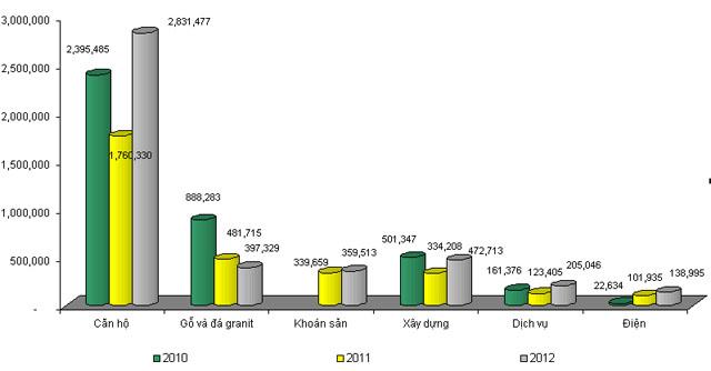 Theo BCTC hợp nhất kiểm toán 2010, 2011 và báo cáo hợp nhất quý IV năm 2012