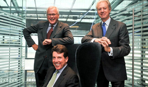 Chủ tịch Marcus Agius (phải) và CEO Bob Diamond (giữa) đều ra đi sau bê bối tại Barclays.