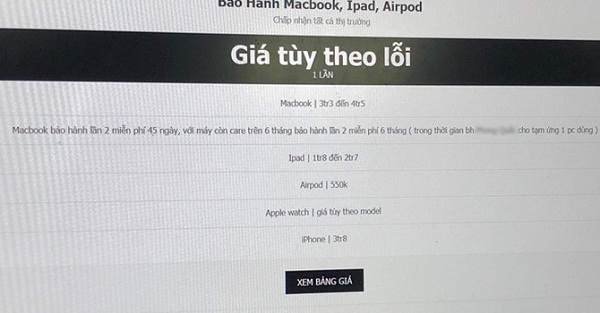 Ông Hoàng cho biết thêm mức giá trung bình cho việc "bảo hành hộ" MacBook khoảng 3-4,5 triệu đồng tùy từng thế hệ và kích thước của máy. Đối với các sản phẩm khác như iPad, giá dao động khoảng 1,5-3 triệu đồng tùy từng model, AirPods là khoảng 500.000 đồng.