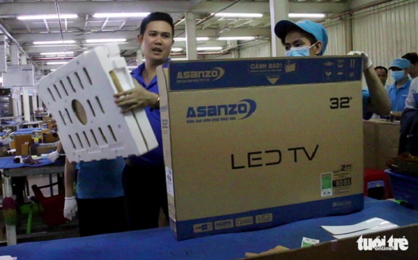 Dây chuyền sản xuất tivi của Asanzo bên trong nhà máy tại khu công nghiệp Vĩnh Lộc (Q.Bình Tân, TP.HCM) - Ảnh: Ngọc Hiển.