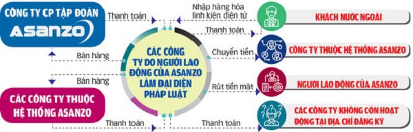 Theo đó, các công ty không còn hoạt động tại địa chỉ đăng ký theo thông báo của cơ quan thuế chủ yếu do người lao động của Tập đoàn Asanzo đứng tên là người đại diện pháp luật để nhập khẩu hàng hóa, linh kiện điện tử, điện gia dụng, điều hòa nhiệt độ để xuất bán cho Tập đoàn Asanzo và các công ty thuộc tập đoàn này.