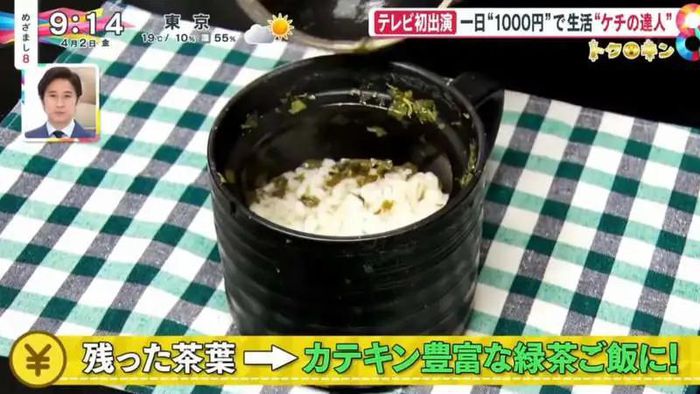 Thay vì pha trà bằng ấm, bà pha trực tiếp vào tách để đỡ tốn nước. Nước và bã trà còn được bà dùng để chan cơm, đây vốn là một món ăn truyền thống của Nhật, có tên ochazuke.