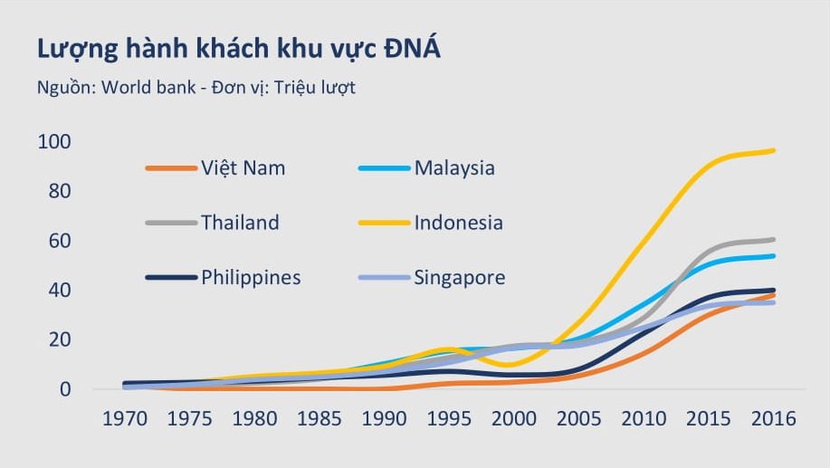 Còn theo nghiên cứu của Trung tâm Hàng không châu Á - Thái Bình Dương, ngành hàng không Việt Nam phát triển nhanh nhất ở khu vực Đông Nam Á. Lượng hành khách hàng không Việt Nam đã đạt tăng trưởng trung bình 14,9%, giai đoạn năm 2010-2015 và sẽ vẫn đạt con số 13,9% trong 5 năm tiếp theo.
