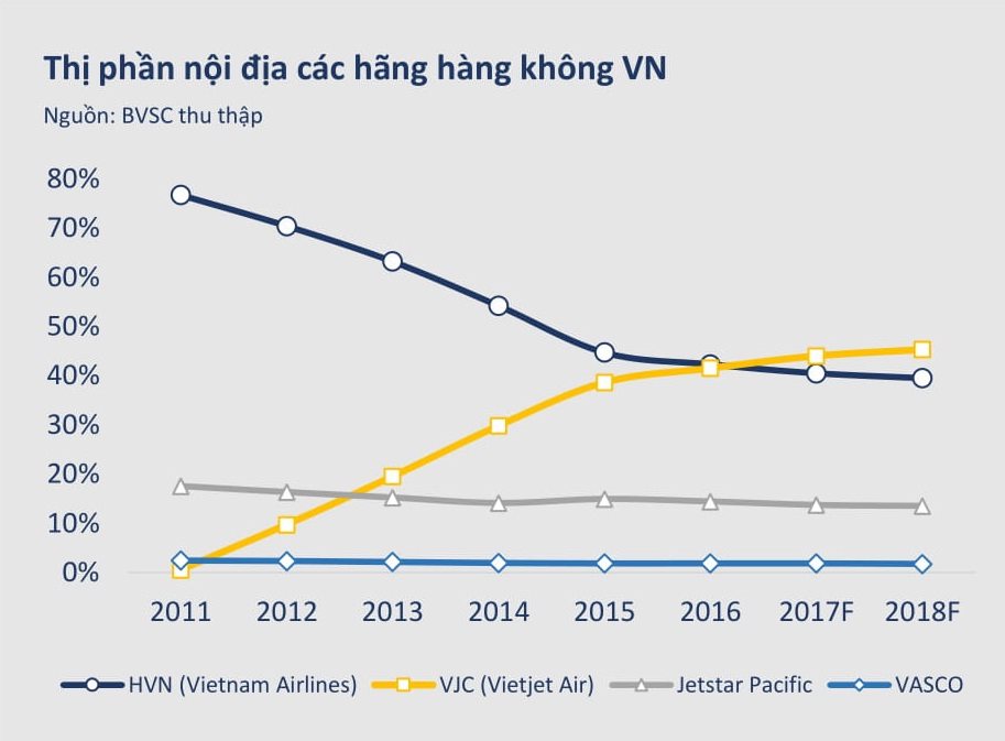 Theo TS. Đỗ Thiên Anh Tuấn, Giảng viên Đại học Fulbright Việt Nam, lĩnh vực hàng không có tính chất độc quyền tự nhiên và độc quyền Nhà nước (độc quyền giấy phép). Do suất đầu tư và chi phí đầu tư lớn nên hãng càng vận hành với công suất cao, sử dụng máy bay nhiều, chi phí trung bình sẽ giảm. Từ đó, tạo ra lợi thế cạnh tranh.