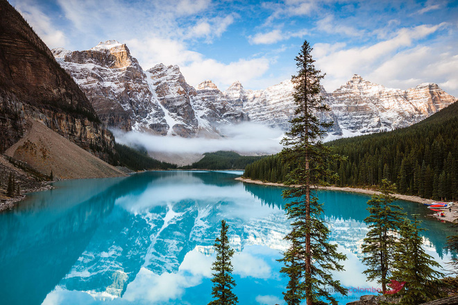 3. Moraine là một hồ sông băng thuộc vườn quốc gia Banff ở khu vực làng Lake Louise, Alberta, Canada. Hồ nước này hiện lên với màu xanh ngọc bích cực kỳ "ảo diệu", có diện tích bề mặt khoảng 0,5 km vuông, ở độ cao khoảng 1,9 km.