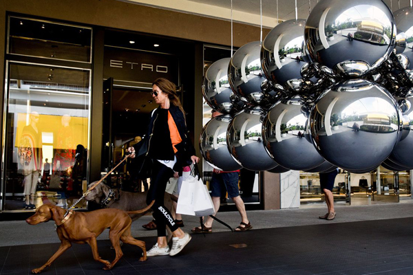 Người mua sắm tham quan giữa một vườn điêu khắc. Ảnh: Bloomberg.