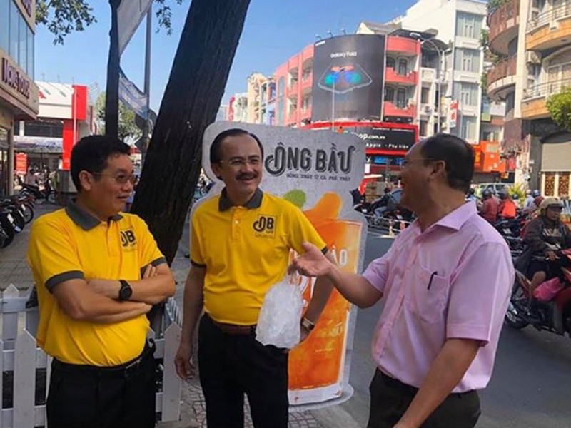 Có một chuyện hài hước là bầu Đức không biết… uống cà phê, vẫn chung tay mở quán với anh em cho vui. “Bọn tui làm chuỗi quán lớn lắm đó. Ba ông thích làm bóng đá thì lấy tên quán chung là “Ông Bầu” chứ không lẽ lấy tên “Bầu Đức” riêng, người ta đâu biết ông Đức là ông nào!” - bầu Đức hóm hỉnh kể. “Ý tưởng của bầu Hải quá tốt! Mình thấy hay thì mình góp sức làm thôi”.