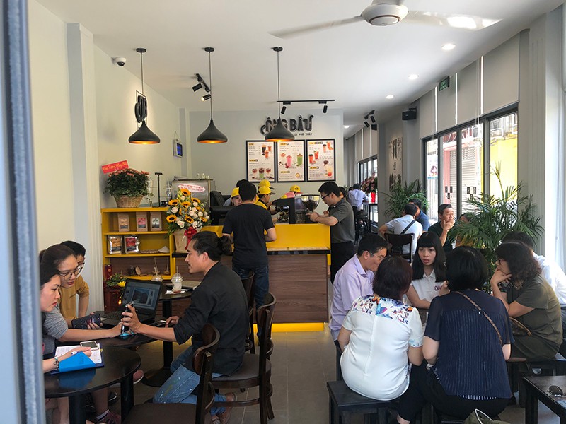 Cà phê Ông Bầu ngày 10-3 mới chính thức khai trương nhưng đã có khách. Ảnh: Gia Huy