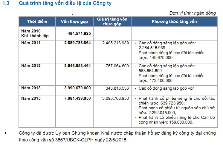 Quá trình tăng vốn của HAGL Agrico (nguồn: Bản cáo bạch niêm yết HNG)