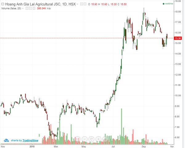 Trong khi đó, cổ phiếu HNG đã niêm yết trên HoSE vào ngày 20.7.2015 và tại thời điểm đầu tháng 9.2015 có thị giá khoảng 30.000 đồng. Hiện tại giá cổ phiếu HNG dao động quanh mức 15.000 -16.000 đồng.