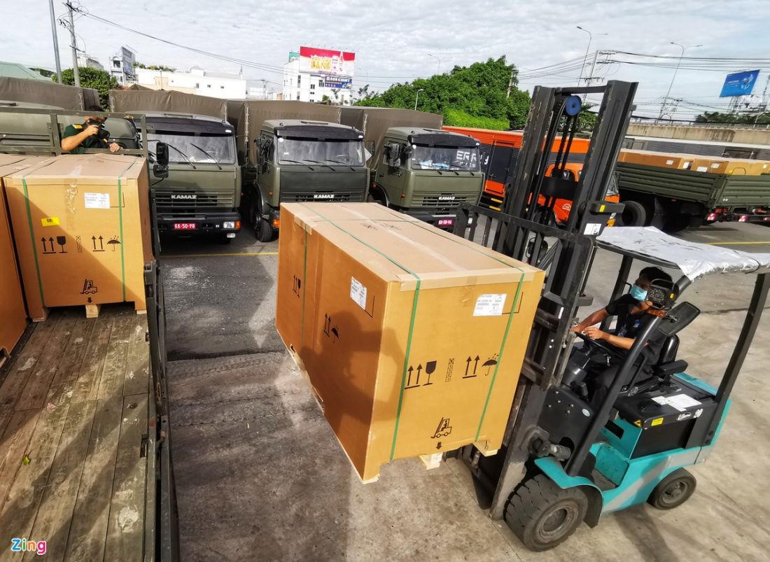 36 tủ lạnh đựng vaccine đã được chuyển về kho bảo quản của quân khu 7 trên 4 chiếc xe vận tải Kamaz. Ngoài ra, 28 chiếc tủ cũng được chuyển về kho của quân khu 9.