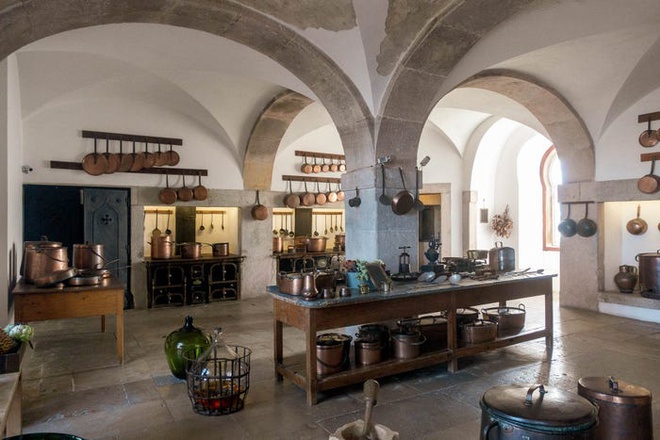 Nhà bếp là căn phòng lớn nhất trong lâu đài, là nơi nấu những bữa tiệc hoàng gia.