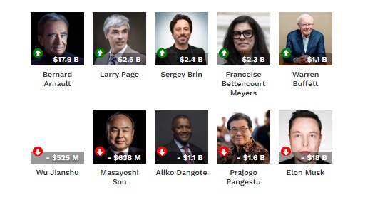 Biến động tài sản của các tỉ phú thế giới trong ngày 26/1.