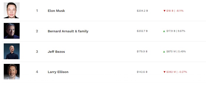 Ở chiều ngược lại, tài sản của ông chủ hàng xa xỉ LVMH Bernard Arnault tăng vọt lên 15,8 tỉ USD trong phiên giao dịch ngày 26/1, giúp ông rút ngắn khoảng cách và “đe dọa” vị trí người giàu nhất thế giới.