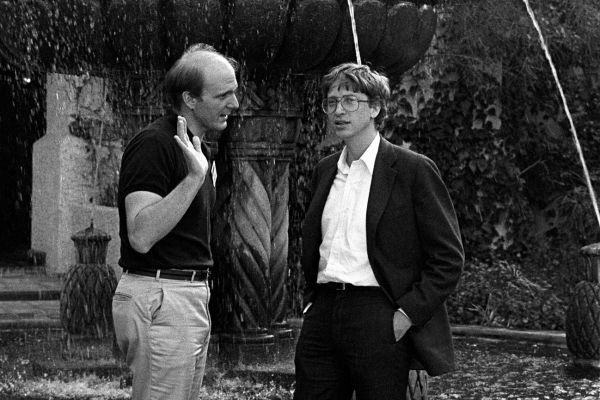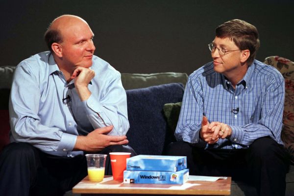 Bill Gates nói chuyện với Ballmer, sau khi Ballmer được bầu làm Chủ tịch Microsoft ngày 21 tháng 7 năm 1998 tại Redmond, Washington. Ballmer trước đây là Phó chủ tịch điều hành bán hàng và hỗ trợ của Microsoft. Những đóng góp của Ballmer giúp Gate mở rộng và phát triển Microsoft.