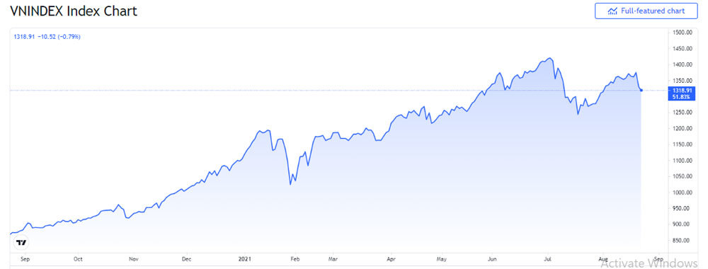 Chỉ số chứng khoán VN-Index ngày 23/8