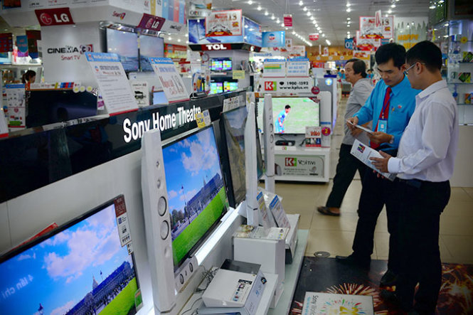 Dạo qua ba trung tâm điện máy tại khu vực Tân Bình, TP.HCM để tìm mua chiếc tivi, cuối cùng anh Đỗ Văn Sáu (đường Tây Thạnh, Q.Tân Phú, TP.HCM) quyết định mua tivi LCD Sony có giá hơn 14 triệu đồng tại một siêu thị điện máy gần nhà.