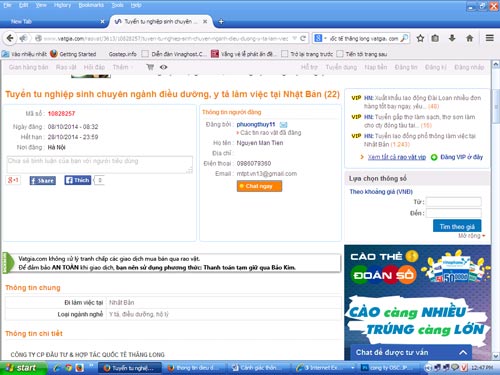 Một số DN vẫn công khai đăng thông tin tuyển điều dưỡng viên đi Nhật trên các trang mạng - Ảnh: H.Bình