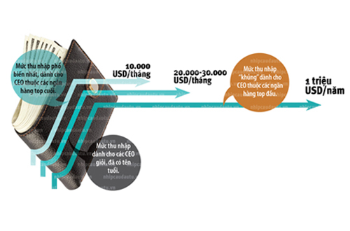 Một CEO quen thuộc trong ngành này (không muốn nêu tên) từng bộc bạch, điều quan trọng là cơ hội được làm nghề, chất lượng công việc và quan hệ làm việc giữa ban điều hành với các ông chủ (Hội đồng Quản trị). Một yếu tố khác cũng không kém phần hấp dẫn là gói đãi ngộ thuộc hàng “khủng” dành cho các CEO ngành ngân hàng. Tuy đây là thông tin tuyệt mật, nhưng thời gian qua đã có không ít lời bàn tán về mức thu nhập có thể lên tới cả triệu USD mỗi năm dành cho vị trí CEO của Techcombank, Sacombank hay ACB.