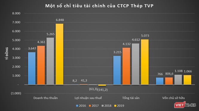 Dữ liệu của VietTimes cho thấy, giai đoạn 2016 - 2019, doanh thu của Thép TVP (công ty mẹ) ghi nhận tăng trưởng ở mức hai chữ số. Gần nhất, năm 2019, doanh thu thần của công ty này đạt 6.848 tỉ đồng, tăng 30% so với năm 2018.