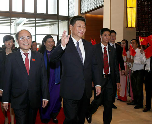 Sáng 6/11, Chủ tịch Trung Quốc Tập Cận Bình đã hội kiến với Chủ tịch Quốc hội Nguyễn Sinh Hùng và có bài phát biểu trước Quốc hội Việt Nam.