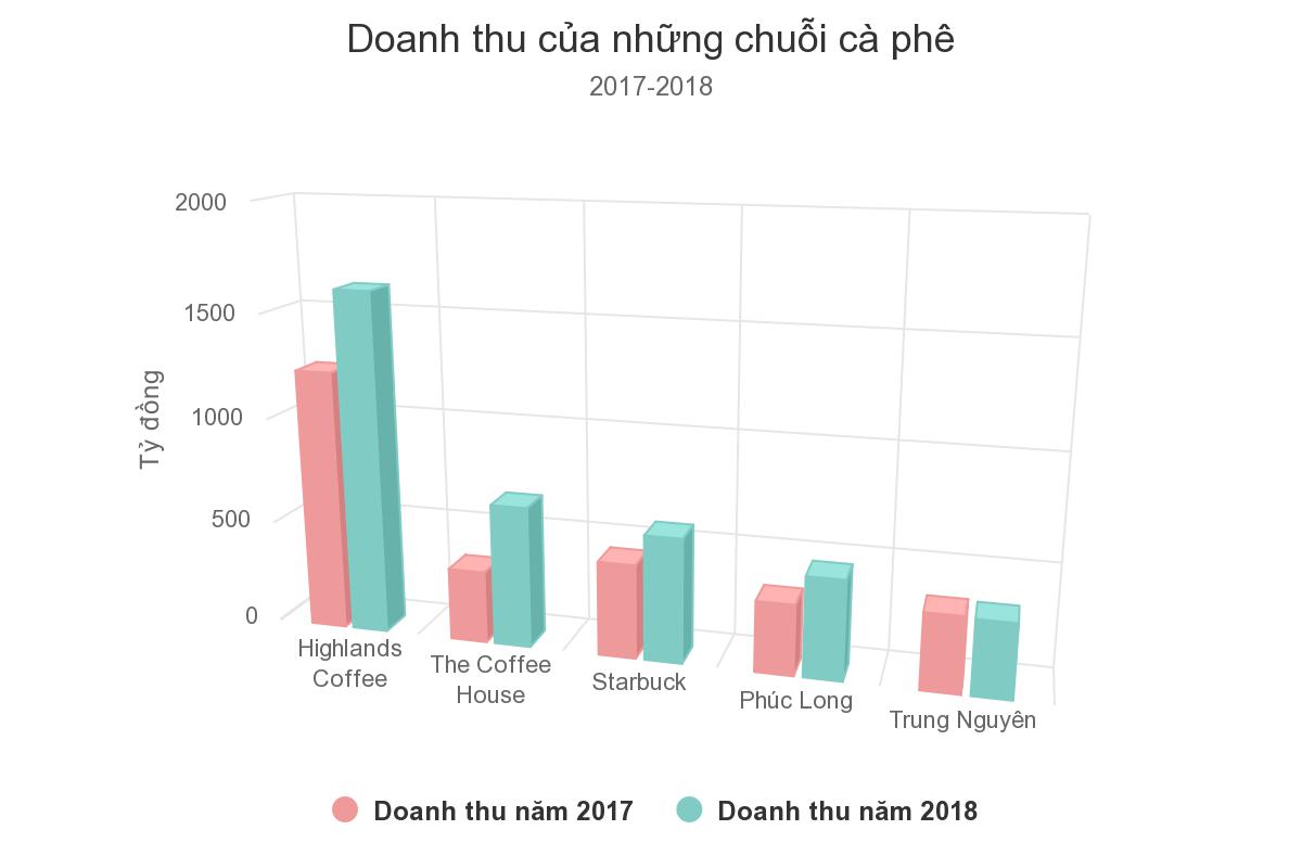 Năm 2017, Starbucks là chuỗi đứng thứ hai về doanh thu, chỉ sau Highlands Coffee, nhưng bảng xếp hạng đã có sự thay đổi vào năm 2018 khi The Coffee House tăng trưởng gần 100% về doanh thu. Theo số liệu từ VIRAC, doanh thu của The Coffee House đạt 669 tỷ đồng năm 2018, trong khi Starbucks bị đẩy xuống vị trí thứ ba với gần 600 tỷ đồng. Phúc Long là chuỗi đứng vị trí thứ tư với 473 tỷ doanh thu, còn Trung Nguyên duy trì doanh thu trên 350 tỷ đồng.