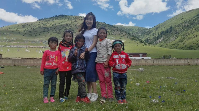 Hà Ánh thích đi dạy tiếng Anh cho các em bé miền núi. Ảnh:NVCC