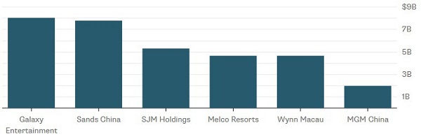 Theo Bloomberg, năm ngoái, Galaxy đạt doanh thu 8 tỷ USD, vượt qua hai đại gia sòng bạc khác tại Macau là Sands China và Wynn Macau.
