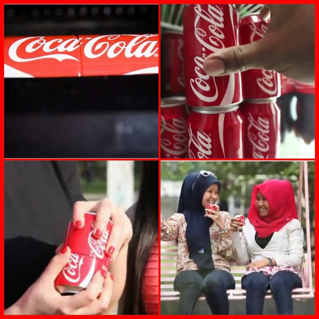 Lon Coca-Cola “đặc biệt” trong chiến dịch Sharing Can thì lại trở thành một người bạn “kết nối” mọi người với nhau một cách tự nhiên, gần gũi. Tại các máy bán nước tự động, bất cứ ai nhấn nút cũng nhận được bất ngờ thú vị khi nửa trên và nửa dưới của lon Coca-Cola tách làm hai lon nhỏ riêng biệt, niềm vui được nhân đôi khi bạn có thể vừa thưởng thức hương vị Coca-Cola, vừa chia sẻ điều đó cùng với người thân, bạn bè. Những lon nước nhỏ này cũng có thể là khởi đầu cho cuộc trò chuyện làm quen với một ai đó.