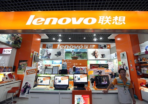 Gian hàng của Lenovo trong một trung tâm điện tử ở Bắc Kinh. Ảnh: Bloomberg