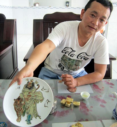 Ông Trung với chiếc đĩa cổ thời Càn Long. |