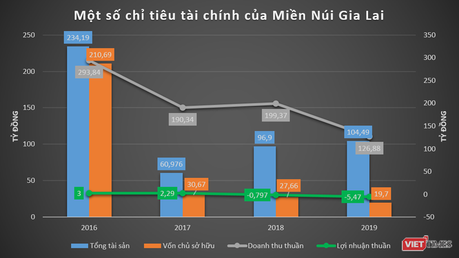 Dữ liệu của VietTimes cho thấy, trong 4 năm trở lại đây, doanh thu của Miền Núi Gia Lai luôn được duy trì trên mức trăm tỷ đồng mỗi năm, tuy nhiên khoản lợi nhuận chỉ đạt vài tỷ đồng, thậm chí là thua lỗ.
