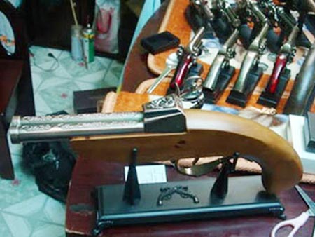 Tỏ ra mình rất am tường cái vụ chơi súng, ông T.C., nghe đâu là chủ 5 cây xăng ở quận 1 và quận 5, nhà trên đường Hoàng Diệu, quận 4, khi được hỏi thăm cái thú của trò săn súng, đã xởi lởi tuôn một mạch. Theo ông C., tùy gu, tùy quan niệm, tùy độ máu me mà mỗi người có kiểu chơi súng khác nhau. Có ông chỉ chăm bẵm sưu tầm những loại bật lửa dạng súng được gọi là "súng lửa" hay "chó lửa". Và đúng như tên gọi theo nghĩa đen của từ này, "chó lửa" chỉ khạc ra lửa chứ không khạc đạn. Giá những khẩu "chó lửa" như thế này dao động từ vài chục đến vài trăm ngàn tùy lớn nhỏ, độ tinh xảo.