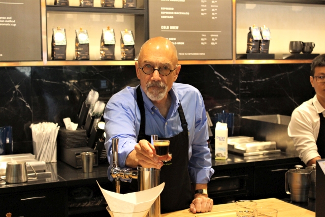 Thực tế đây là công việc và nhiệm vụ của tôi tại Starbucks trên toàn cầu. Starbucks Việt Nam đã mời tôi nhiều làn nhưng tôi chưa săp xếp được. Trong chuyến vòng quanh các nước thuộc khu vực châu Á, Việt Nam là trạm dừng chân đầu tiên của tôi.