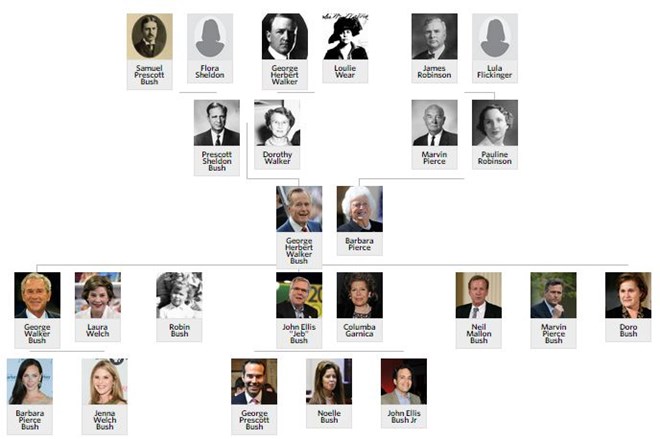Hồi tháng 1/2005, tạp chí The Economist miêu tả gia tộc Bush là một trong những "vương triều" thành công nhất trong lịch sử nước Mỹ. Gia tộc này sản sinh ra những nhân vật rất quyền lực và giàu có. Điển hình nhất là 2 đời tổng thống, thứ 41 và 43, của Mỹ cũng như 2 vị thống đốc bang.