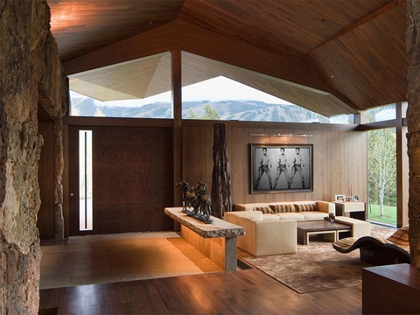Biệt thự chính ở trang trại rộng 1.300 m2 có 11 phòng ngủ và 12 phòng tắm. Những tấm kính lớn bao quanh ngôi nhà giúp người chủ có thể ngắm nhìn quang cảnh tuyệt đẹp của dãy núi Rocky.
