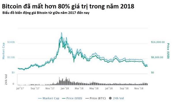 Tuy nhiên, những khoản lợi nhuận kếch xù này chỉ duy trì được trong vài tháng đầu năm nay, từ tháng 2 đến nay, giá các loại tiền ảo liên tục đi xuống và chưa có dấu hiệu dừng lại. Tính từ giá đỉnh hồi cuối 2017, nhà đầu tư trót đổ tiền vào các đồng tiền ảo này trung bình đã lỗ trên 80%.