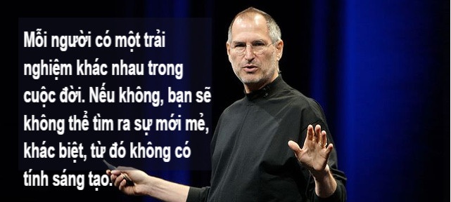 "Câu trả lời nằm ở cách trải nghiệm cuộc sống của bạn. Mỗi người có một trải nghiệm khác nhau trong cuộc đời. Nếu không, bạn sẽ không thể tìm ra sự mới mẻ, khác biệt, không thể có tính sáng tạo. Mà kinh doanh thì lại cần những yếu tố mới lạ. Những người cởi mở và nhạy bén với cái mới sẽ tìm kiếm những điều phi tiêu chuẩn trong cuộc sống", Steve Jobs nói.