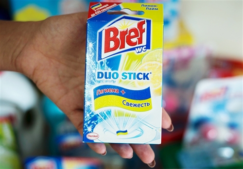 Nước tẩy bồn cầu Bref Duo Stick có màu xanh và vàng đã bị thu hồi khỏi các siêu thị ở Đông Âu sau khi một quảng cáo được phát sóng trên một kênh truyền hình Nga bị những người hàng xóm Ucraina phát hiện.