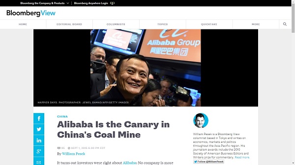 Có vẻ như William Pesek đã quá vội vàng khi so sánh chăng? (Bài viết: “Alibaba, nhân tố cảnh báo sớm của Trung Quốc” – bởi William Pesek đăng trên Bloomberg ngày 1/9/2015. Ảnh: chụp từ màn hình)