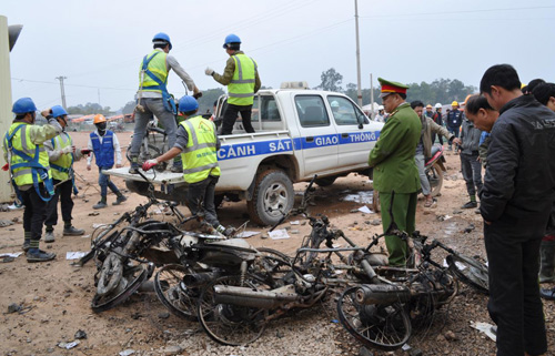 "9h, công an huyện Phổ Yên, công an tỉnh đã đưa 11 bảo vệ ra khỏi 3 container và giải tán đám đông. Hơn 10h đám đông được giải tán và công an bắt đầu điều tra hiện trường", Chủ tịch UBND tỉnh Thái Nguyên báo cáo Thủ tướng và cho hay, xô xát khiến 11 bảo vệ và 2 công an bị thương; 22 xe máy và 3 container bị đốt cháy.