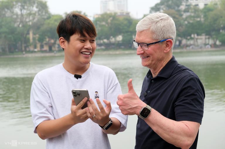 CEO Apple Tim Cook và Duy Thẩm/ Ảnh VNExpress.