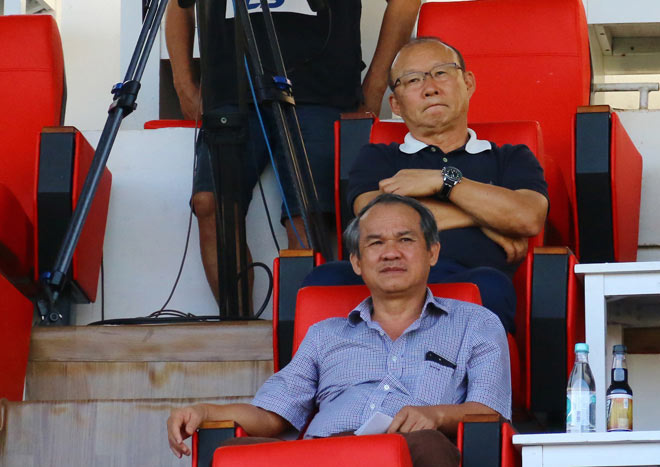 Chủ tịch HAGL - ông Đoàn Nguyên Đức (áo xanh) cùng HLV Park Hang-seo.