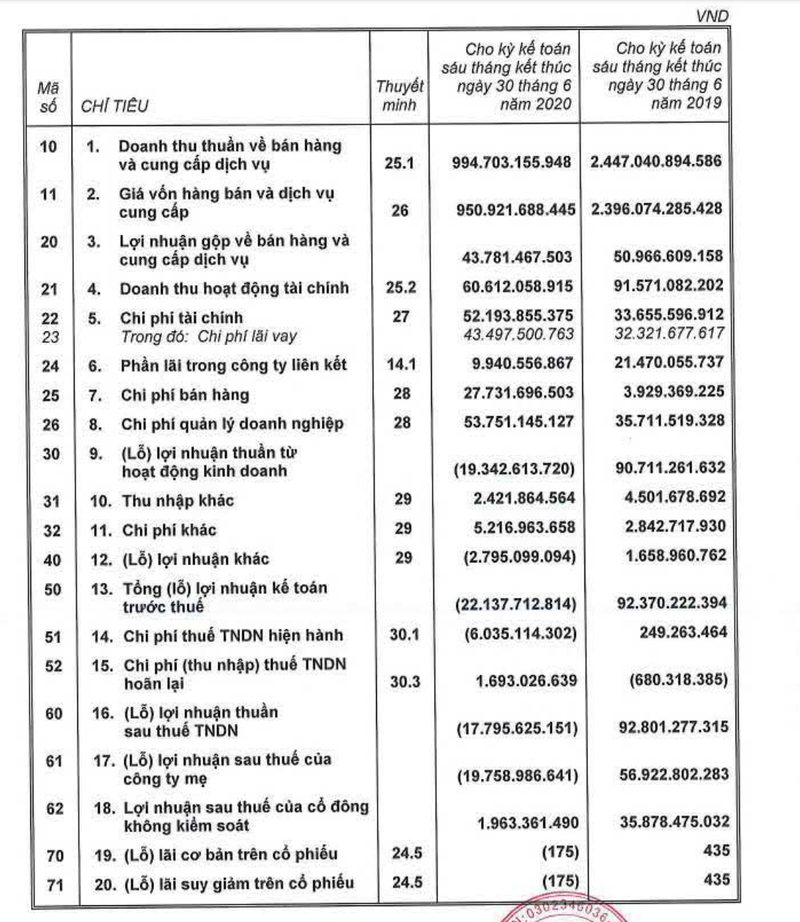 Sáu tháng đầu năm 2020, TDH ghi nhận 984 tỉ đồng doanh thu, giảm 60% so với cùng kỳ năm trước, đồng thời báo lỗ 7,2 tỉ đồng sau thuế. Tính đến cuối tháng 6-2020, tổng tài sản của TDH đã giảm nhẹ 3% so với đầu năm, xuống mức 5.187 tỉ đồng, trong đó tài sản ngắn hạn chiếm 44% với 2.301 tỉ đồng chủ yếu là hàng tồn kho (1.077 tỉ đồng) và các khoản phải thu (972 tỉ đồng).
