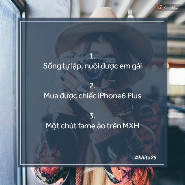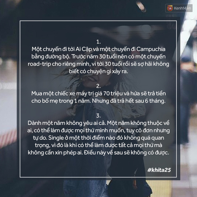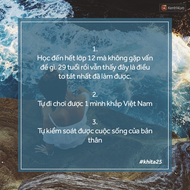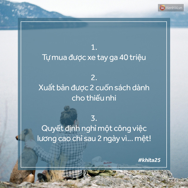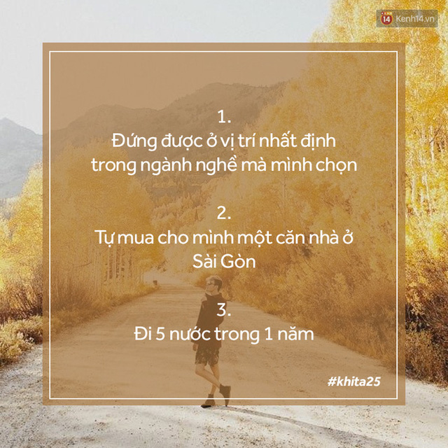 15/12/2016 11:25 AMCó người phải mất nhiều thời gian để nghĩ xem 25 tuổi mình đã làm được những gì, có người lại rất nhanh chóng kể ra 3 thứ quan trọng nhất mà mình muốn có được. #khita25 - thử thách này sẽ giúp bạn nhìn lại hoặc lên kế hoạch cho tuổi trẻ thú vị của mình.